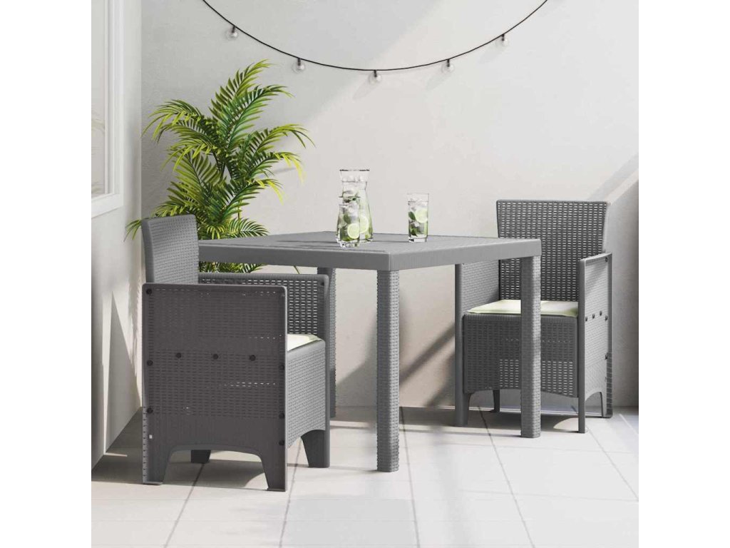 Tento moderní zahradní jídelní set přináší sofistikovanost a funkčnost do různých venkovních prostor. Ideální pro venkovní stolování na terase nebo v zahradě, tento set spojuje elegantní linie s texturovaným povrchem, aby poskytl stylový zážitek při jídle. Skvělý pro letní setkání a venkovní stolování, tento set nabízí pohodlí a pohodlné posezení, včetně polštářů pro každý sedák. Čtvercový stůl a odpovídající židle snadno doplní moderní designy, poskytují elegantní a zároveň neformální prostředí pro rodinné jídla nebo společenská setkání.