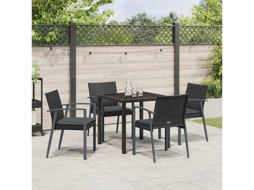 Tenhle moderní zahradní jídelní set kombinuje styl s funkčností. Je navržen pro venkovní použití, ideální pro zahradní grilovačky nebo večerní posezení na terase. Černý ocelový rám vypadá skvěle a hodí se do každého exteriéru. UV odolné materiály zvyšují odolnost vůči špatnému počasí, takže se můžete spolehnout na to, že je skvělou volbou pro venkovní jídla. PE ratan dodává pohodlí a styl, vybízí vás si užít jídla na sluníčku nebo pod hvězdami.