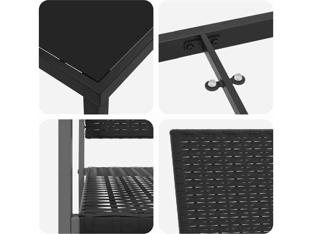 - Materiály: Zahradní set je vyroben z PE ratanu a práškově lakované oceli, což zajišťuje, že odolává povětrnostním vlivům. Ratan je pohodlný, zatímco ocel zaručuje dlouhou životnost a ochranu proti poškození.