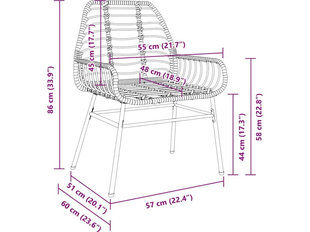 - 4 x židle: 60 x 51 x 86 cm (D x Š x V)