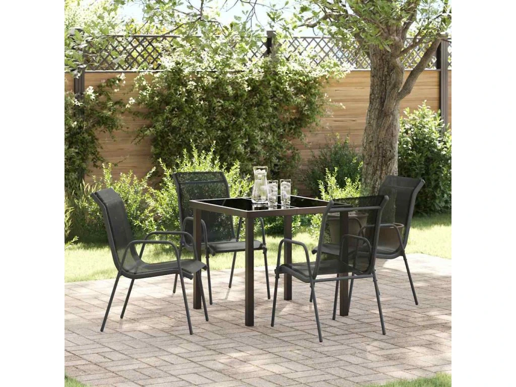 Zahradní jídelní souprava 5 pcs Černá Práškově lakovaná ocel [3379136]
