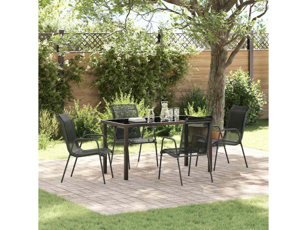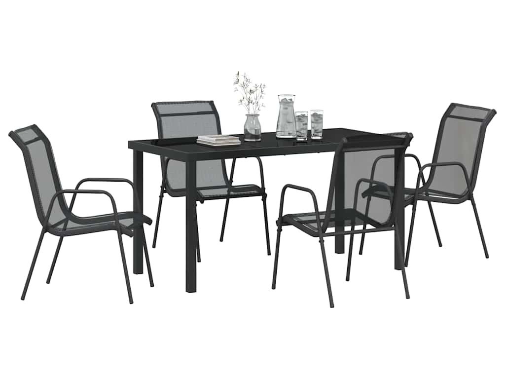 Zahradní jídelní souprava 5 pcs Černá Práškově lakovaná ocel [3379137]