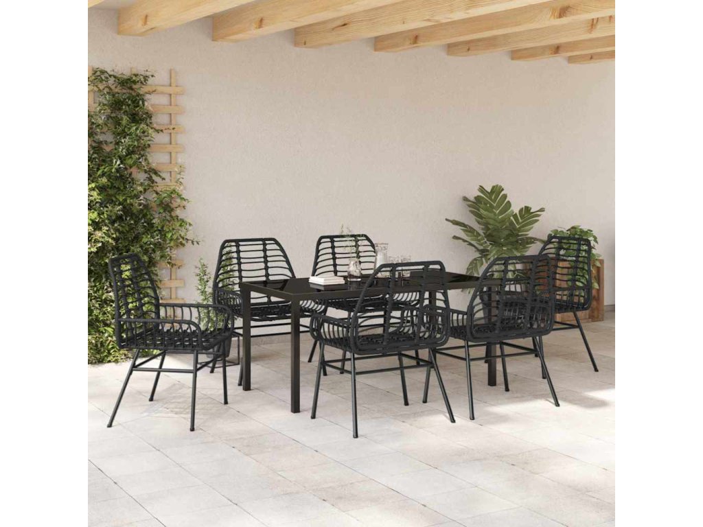 Zahradní jídelní souprava 7 pcs Černá polyratan [3380845]
