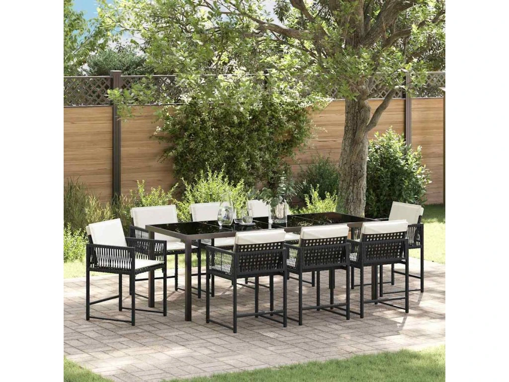 Zahradní jídelní souprava 9 pcs Černá polyratan [3380744]