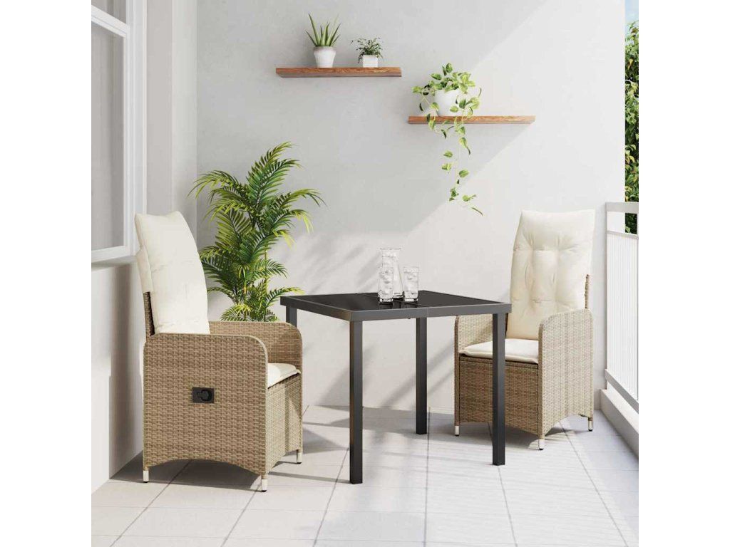Zahradní jídelní souprava s polštářem 3 pcs Béžová polyratan [3379653]