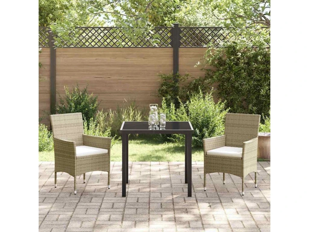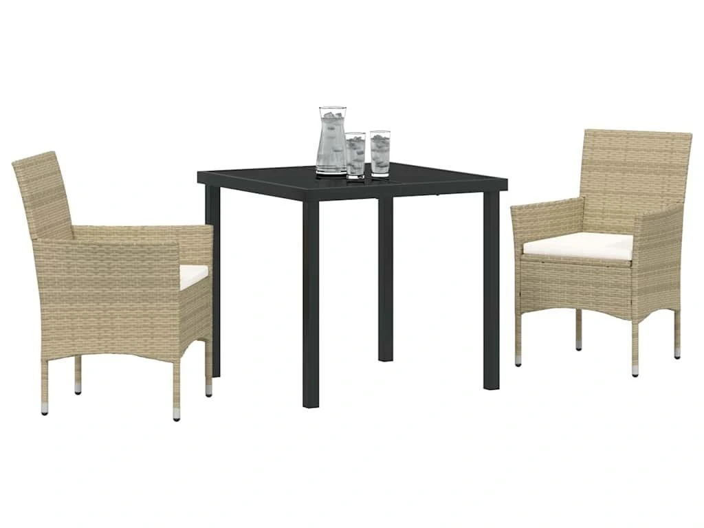 Zahradní jídelní souprava s polštářem 3 pcs Béžová polyratan [3379737]