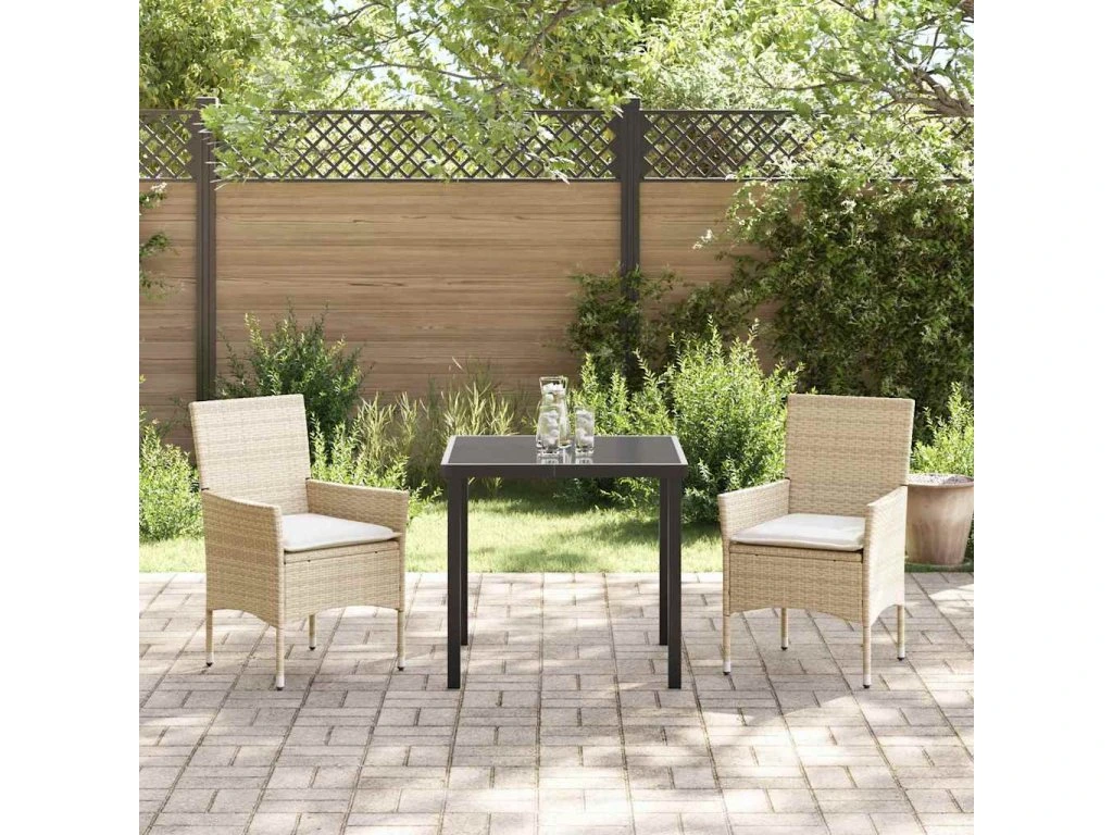 Zahradní jídelní souprava s polštářem 3 pcs Béžová polyratan [3379800]