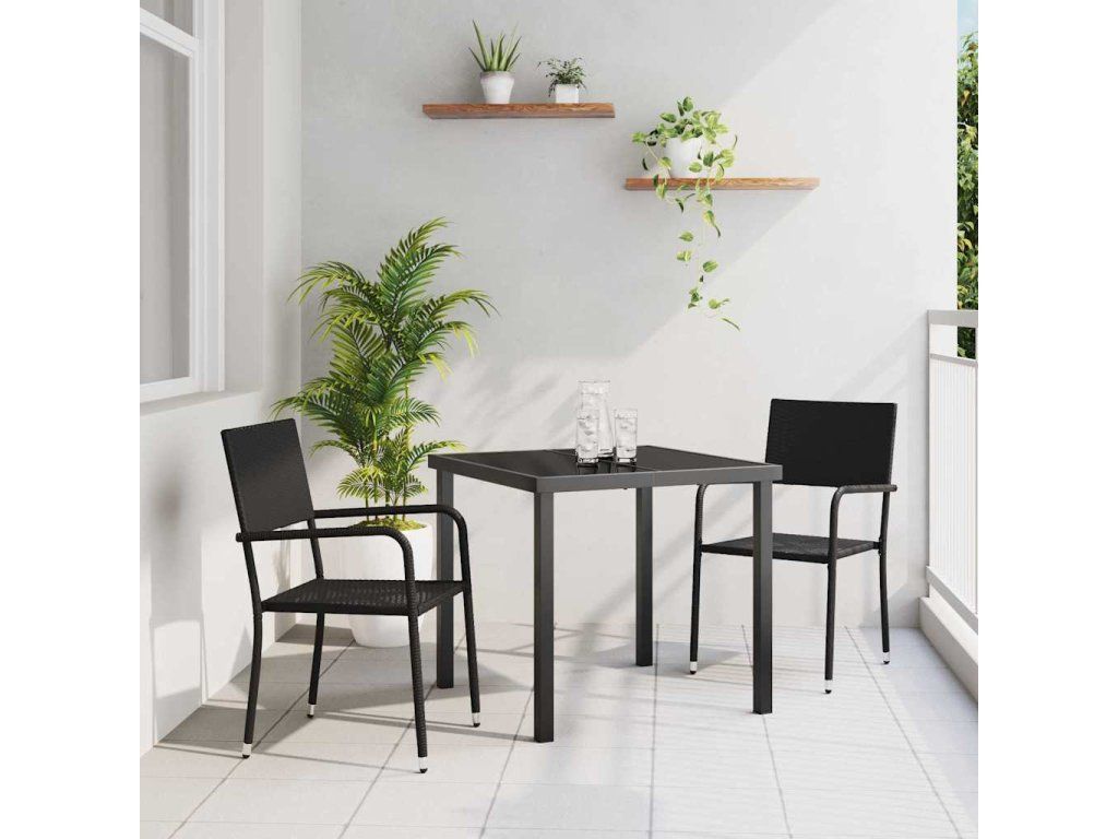 Zahradní jídelní souprava s polštářem 3 pcs Černá polyratan [3379905]
