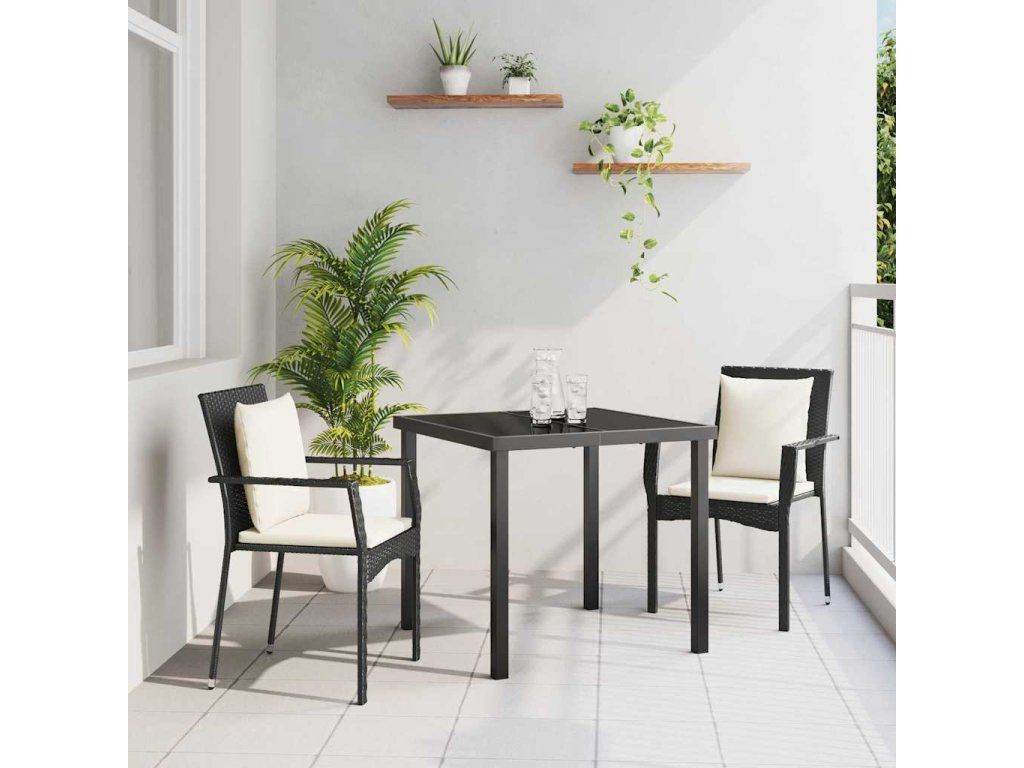 Zahradní jídelní souprava s polštářem 3 pcs Černá polyratan [3380071]
