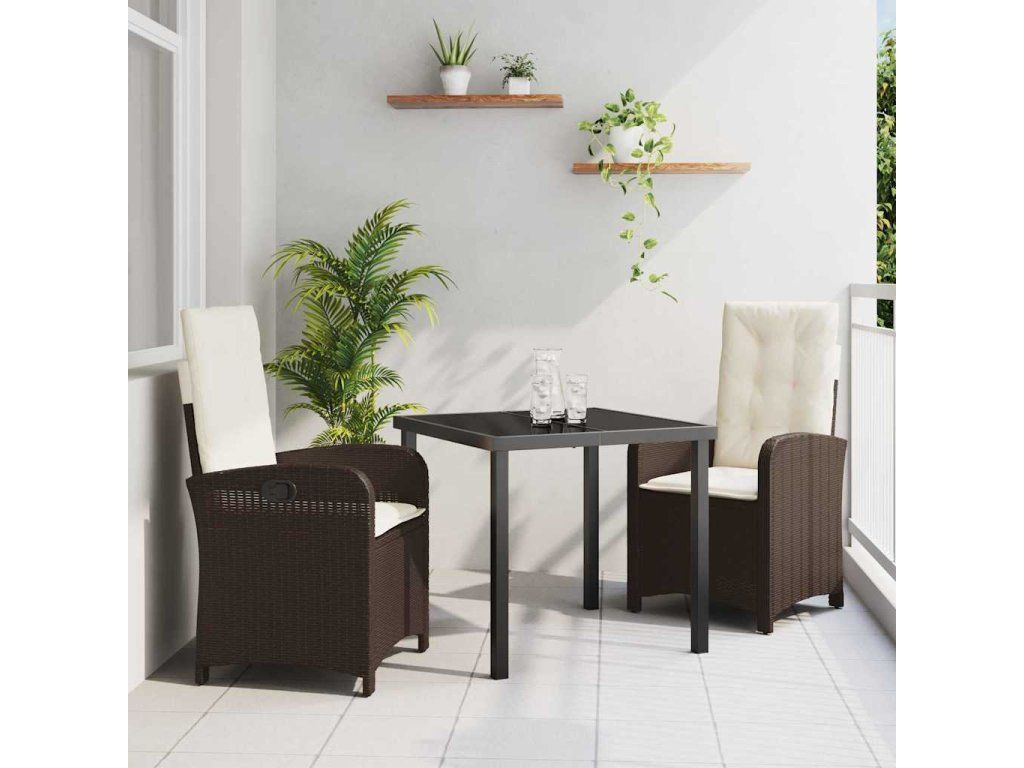 Zahradní jídelní souprava s polštářem 3 pcs Hnědá polyratan [3380267]
