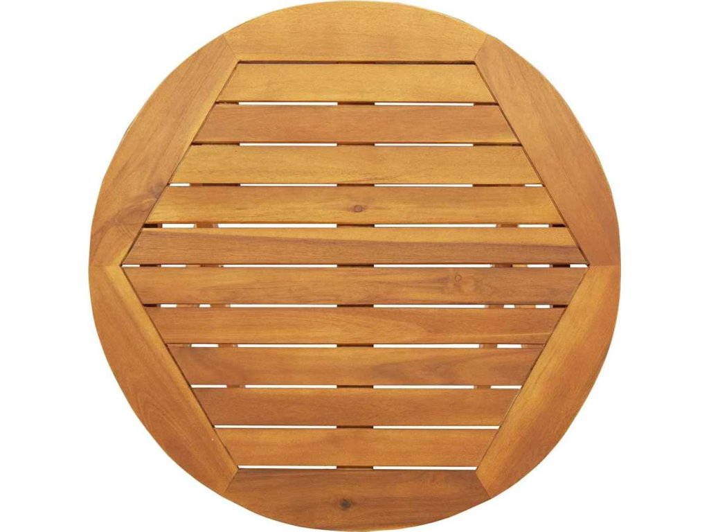 - Vysoce kvalitní materiál: Vyrobeno z odolného masivního akáciového dřeva, které vyniká svou robustností a krásou. Zajišťuje dlouhodobou stabilitu a vzhled, který odolává povětrnostním podmínkám. Dřevo ukazuje přirozené vzory letokruhů, spojující trvanlivost a eleganci.