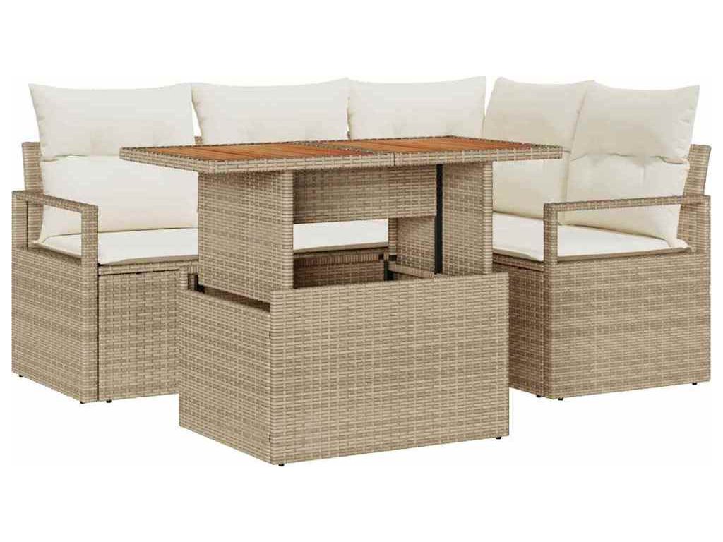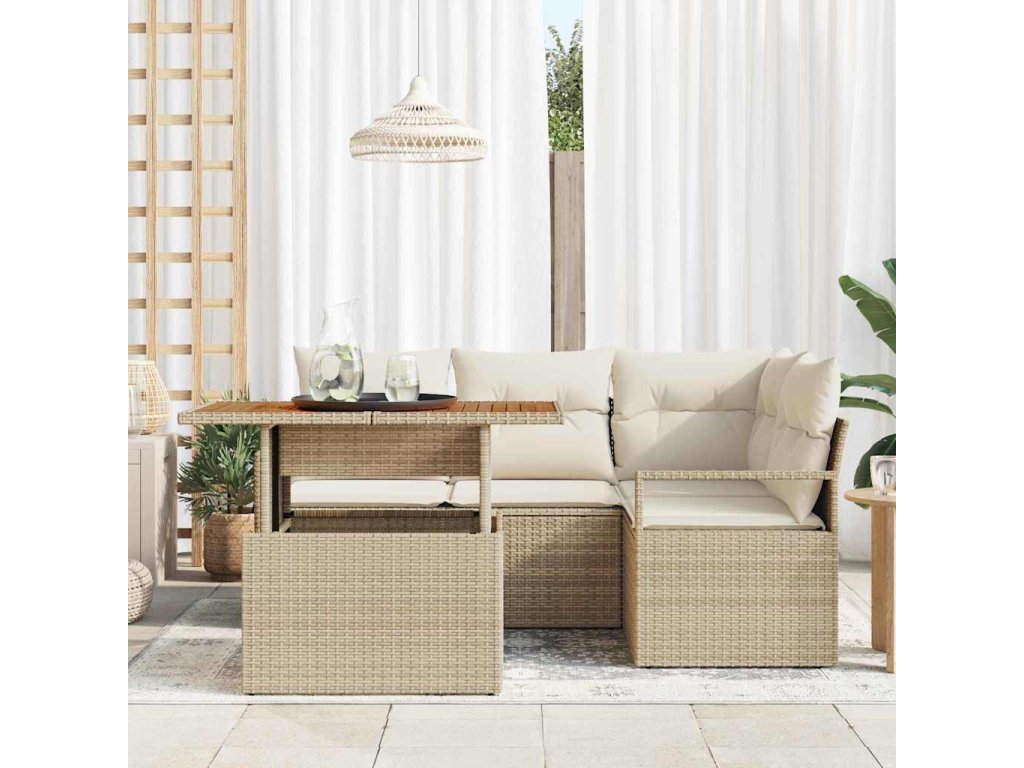Zahradní jídelní souprava s polštářem 5 pcs Béžová a krémová [3349707]