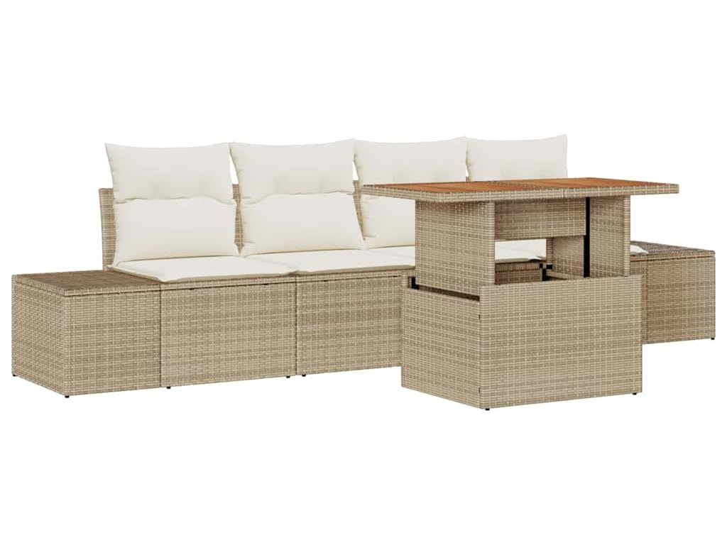Zahradní jídelní souprava s polštářem 5 pcs Béžová a krémová [3349896]