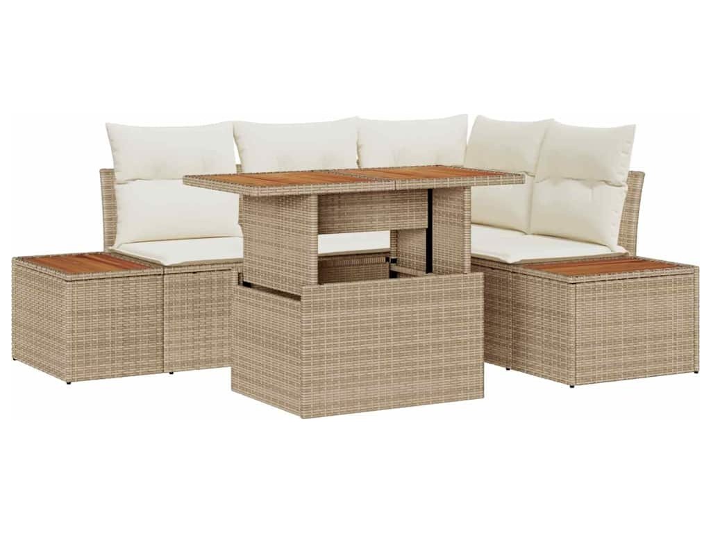 Zahradní jídelní souprava s polštářem 5 pcs Béžová a krémová [3350068]