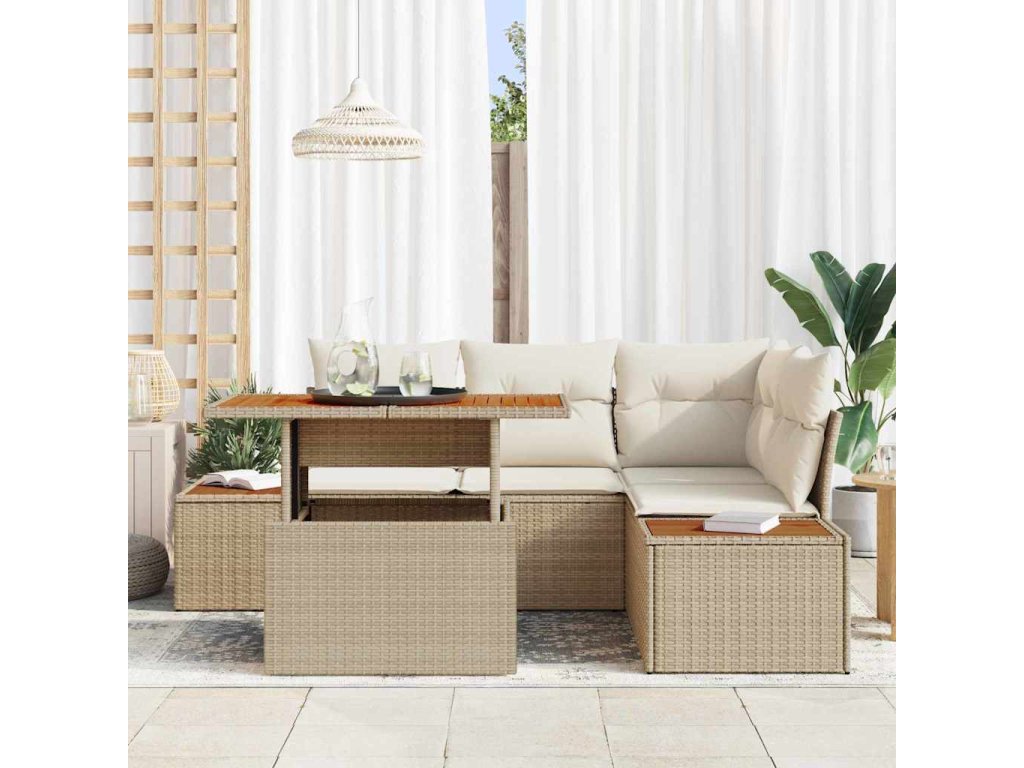 - Špičkové materiály: Je vyrobený z polyratanu, práškově lakované oceli a masivního akáciového dřeva, takže je připravený na venkovní použití. Tyhle materiály dodávají super pevnost a pěkný vzhled, což zajistí dlouhou životnost.