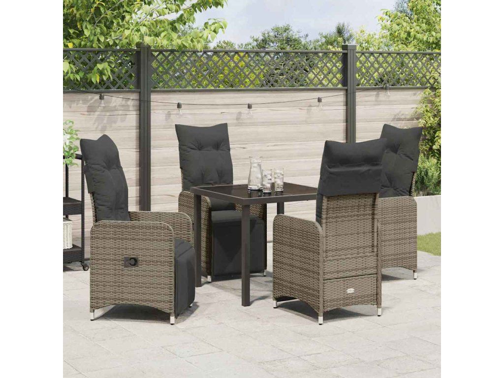 - Vysoce kvalitní materiály: Na výrobu setu byly použity poly ratan, tvrzené sklo a práškově lakovaná ocel. Tento set spojuje styl s odolností. Poly ratan navíc chrání proti UV záření, což prodlužuje dobu jeho atraktivity a funkčnosti. Práškově lakovaná ocel přináší pevnou oporu pro venkovní použití.