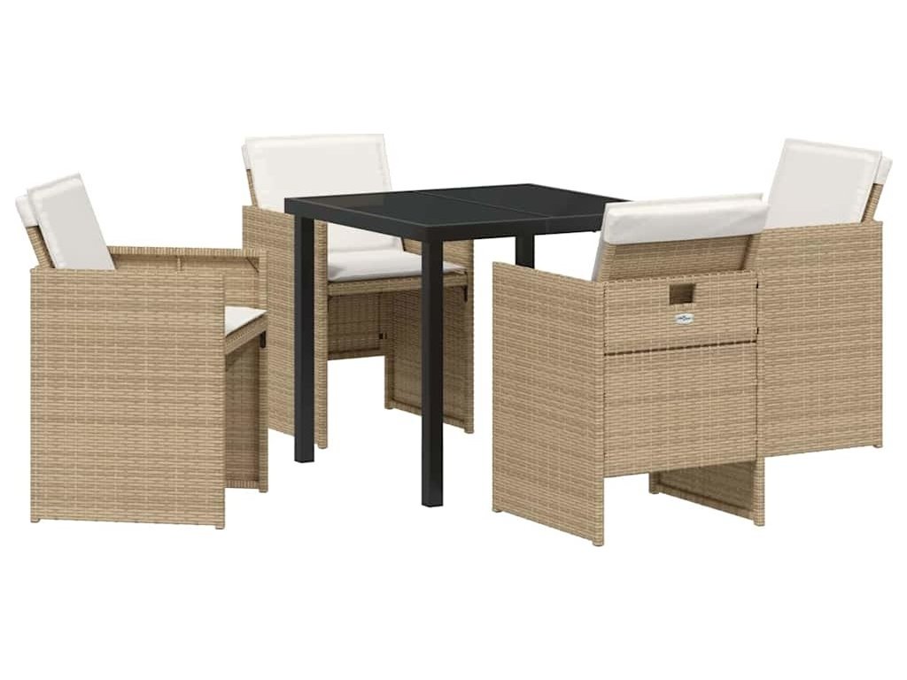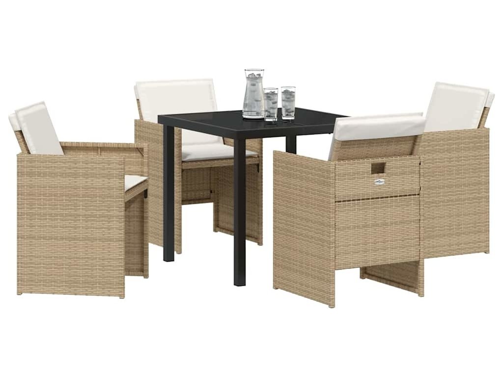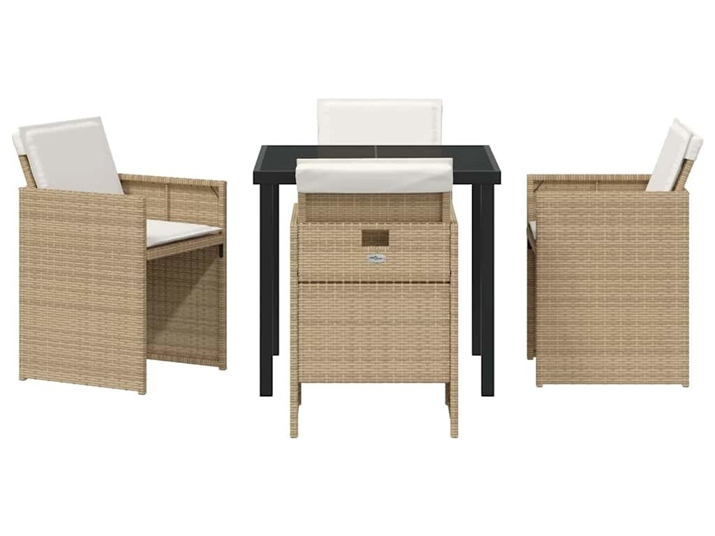 Zahradní jídelní souprava s polštářem 5 pcs Béžová polyratan [3379956]