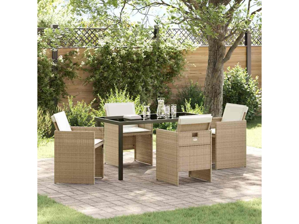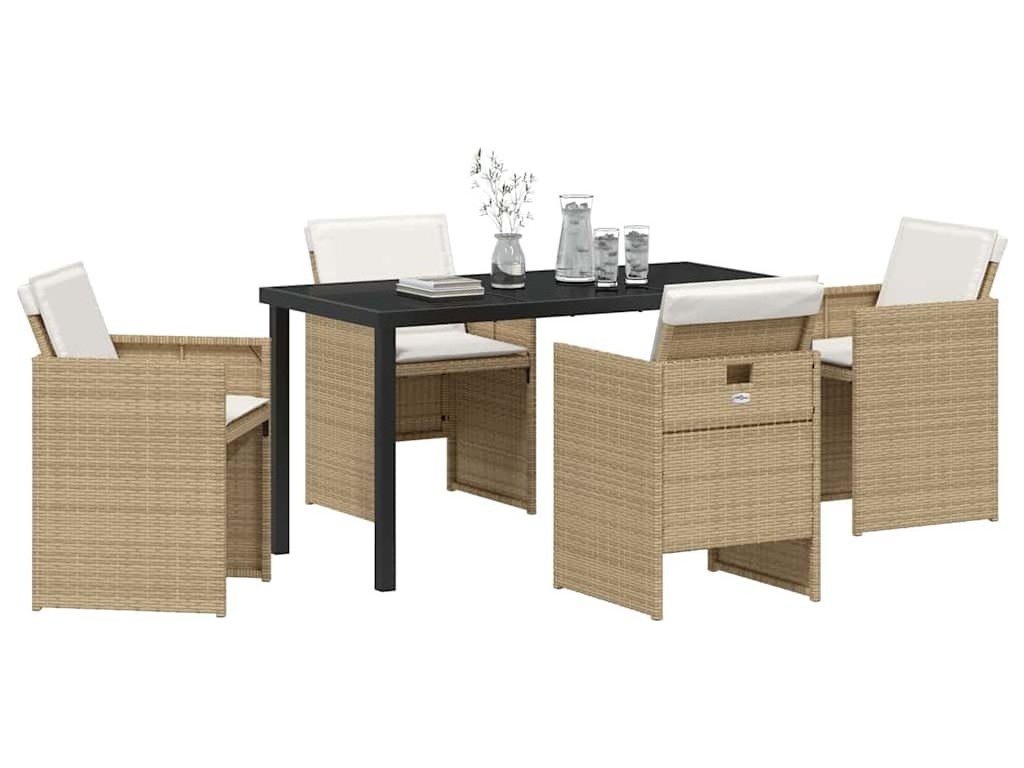 Zahradní jídelní souprava s polštářem 5 pcs Béžová polyratan [3379957]