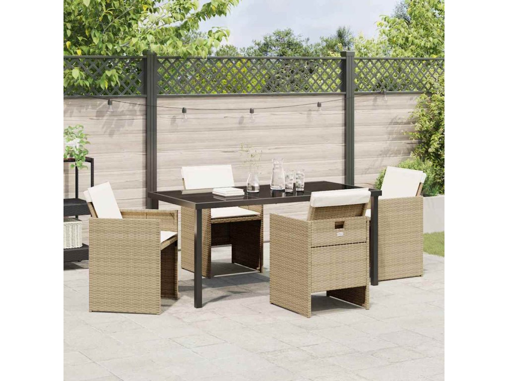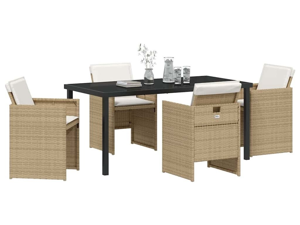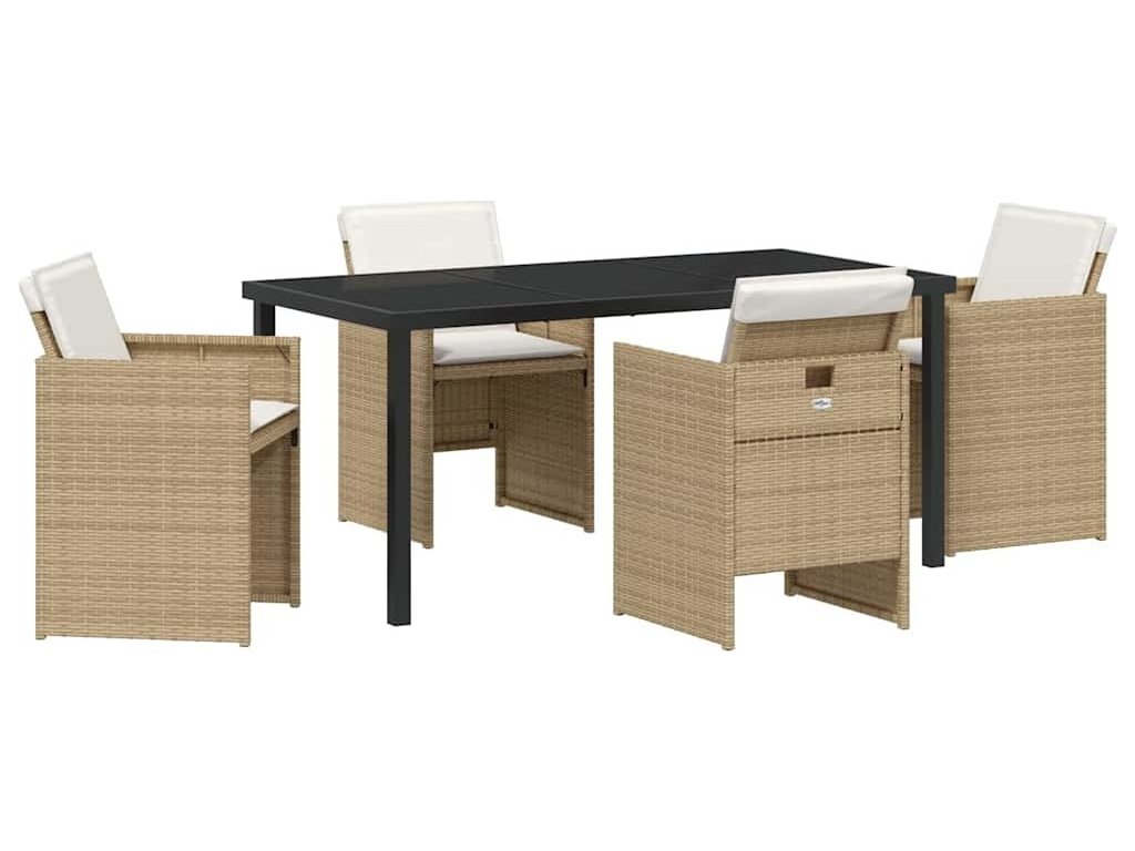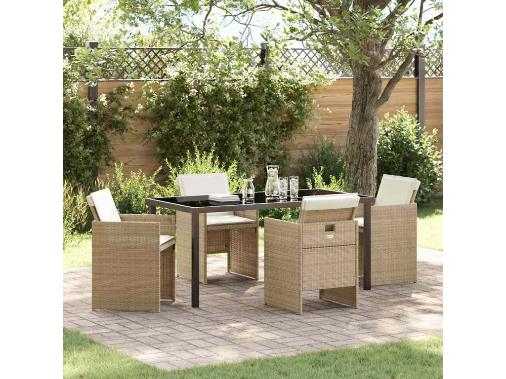 Zahradní jídelní souprava s polštářem 5 pcs Béžová polyratan [3379958]