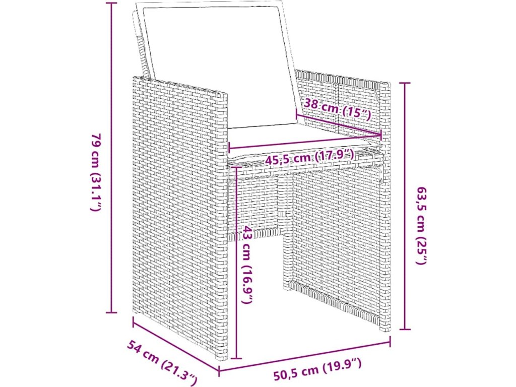 - 4 x Zahradní židle: 50,5 x 54 x 79 cm (D x Š x V)
