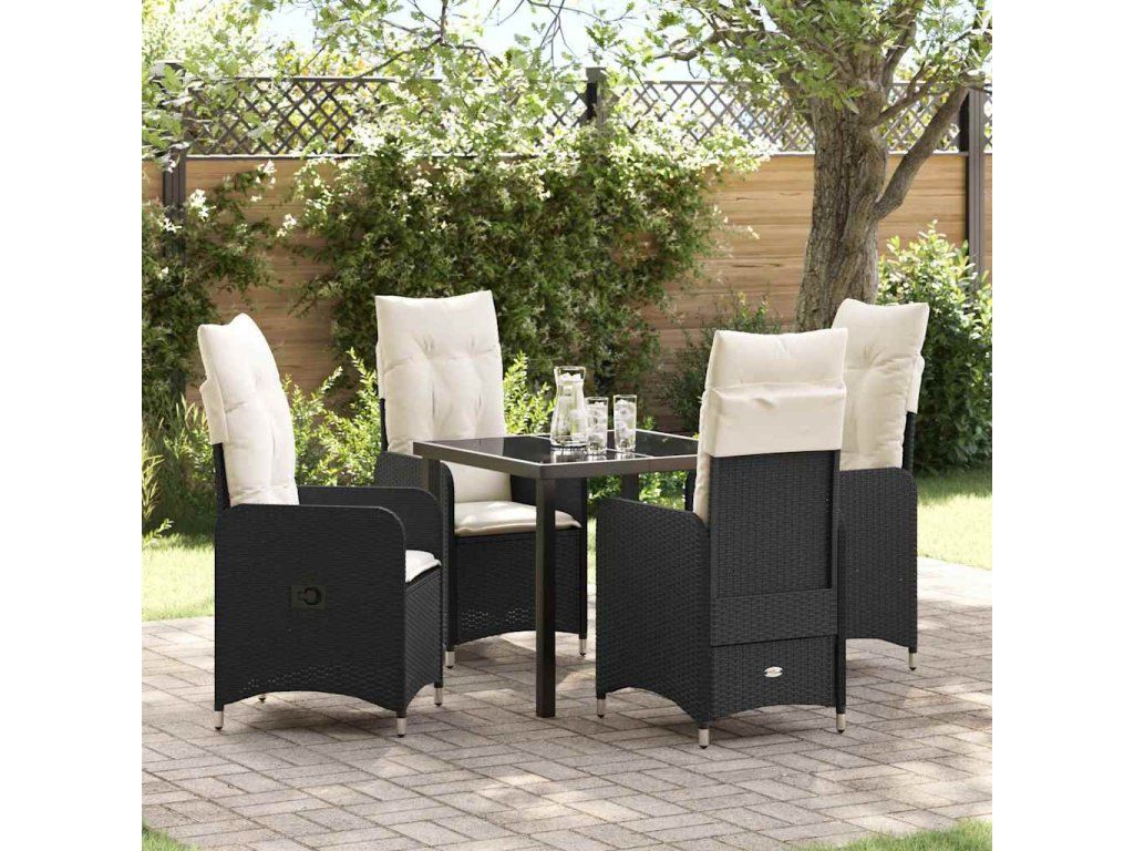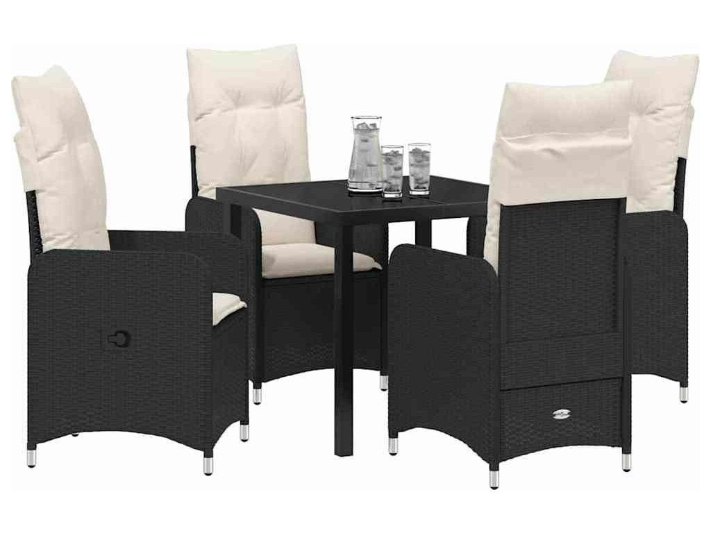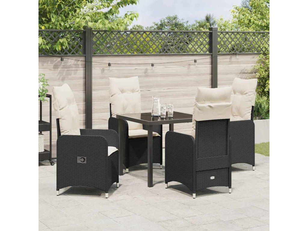 Zahradní jídelní souprava s polštářem 5 pcs Černá polyratan [3379633]