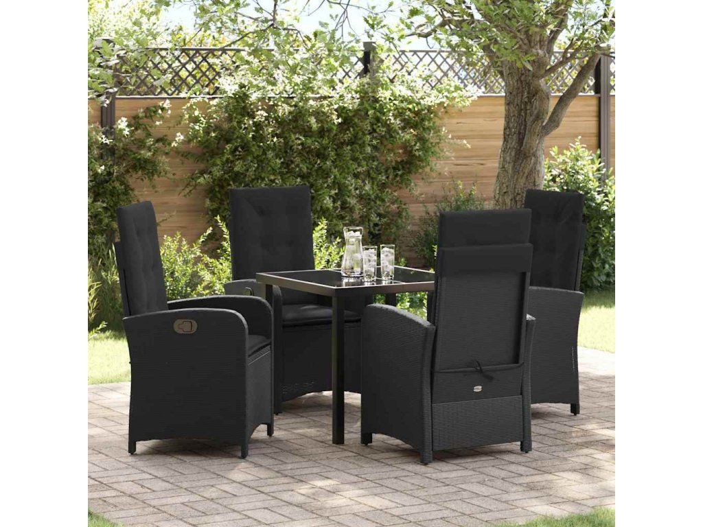 Zahradní jídelní souprava s polštářem 5 pcs Černá polyratan [3380261]