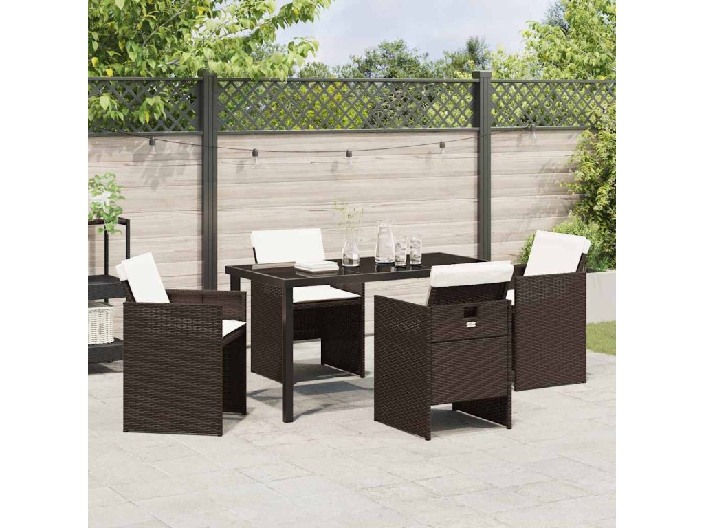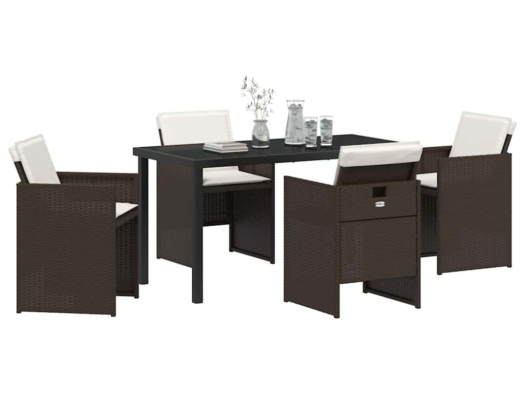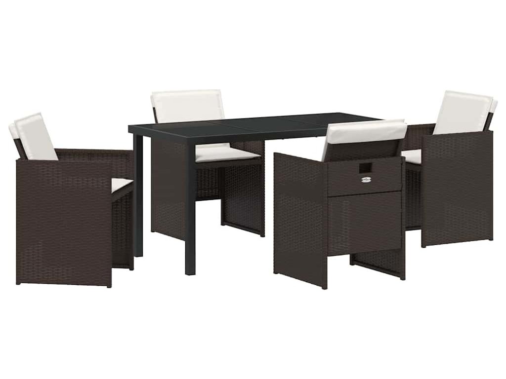 Zahradní jídelní souprava s polštářem 5 pcs Hnědá polyratan [3379953]