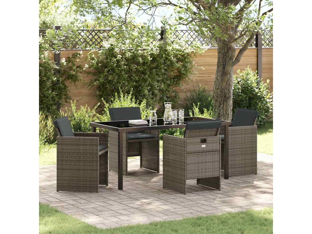 Zahradní jídelní souprava s polštářem 5 pcs Šedá polyratan [3379950]