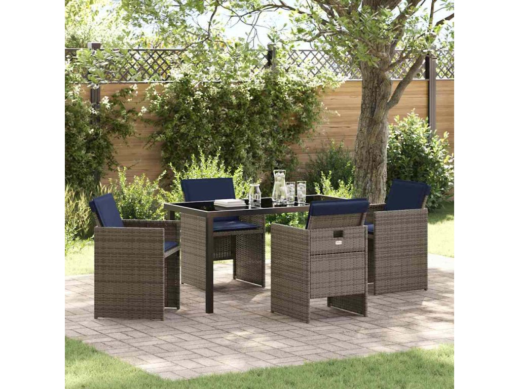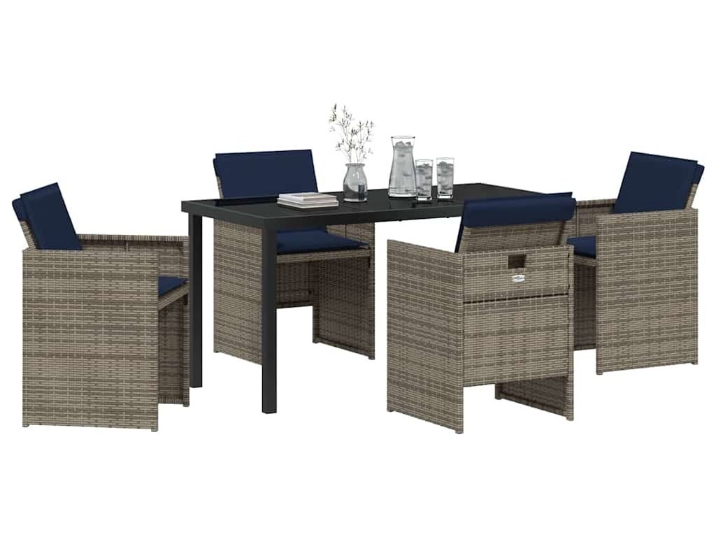 Zahradní jídelní souprava s polštářem 5 pcs Šedá polyratan [3379969]