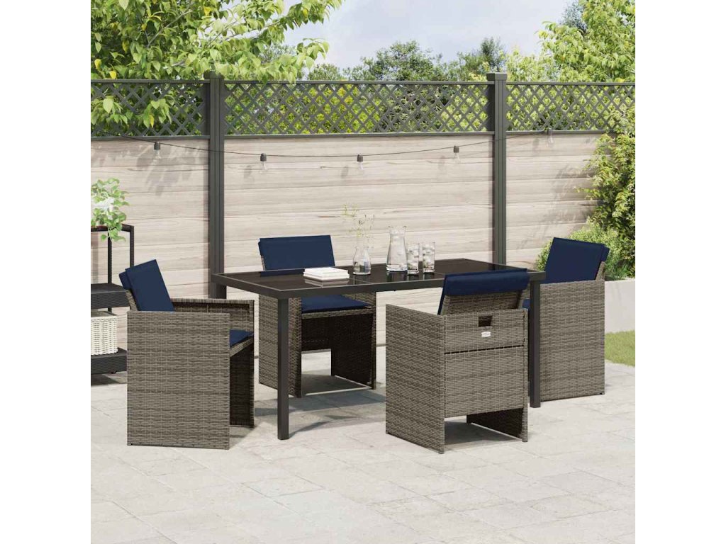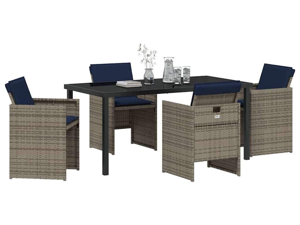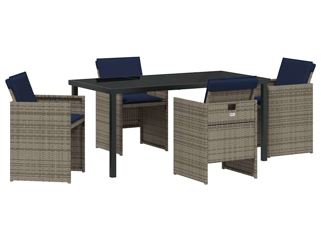 Zahradní jídelní souprava s polštářem 5 pcs Šedá polyratan [3379970]