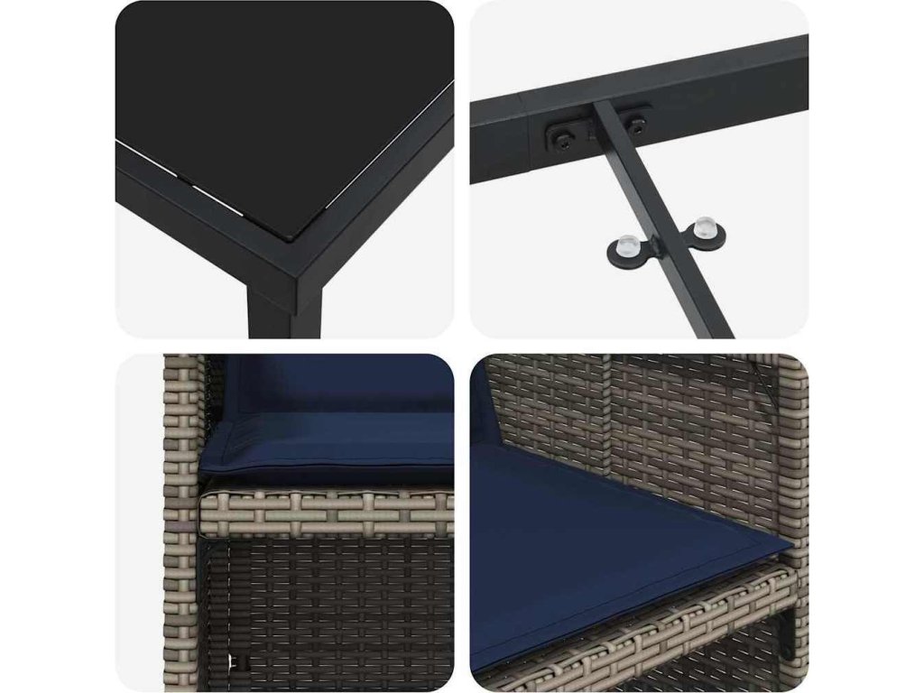 - Flexibilní použití: Souprava se hodí do jakéhokoliv venkovního prostoru – ať už je to zahrada, terasa nebo patio. Jejím moderním stylem snadno zapadá do městských i venkovských prostředí, takže je perfektní volbou pro akce nebo relaxaci.
