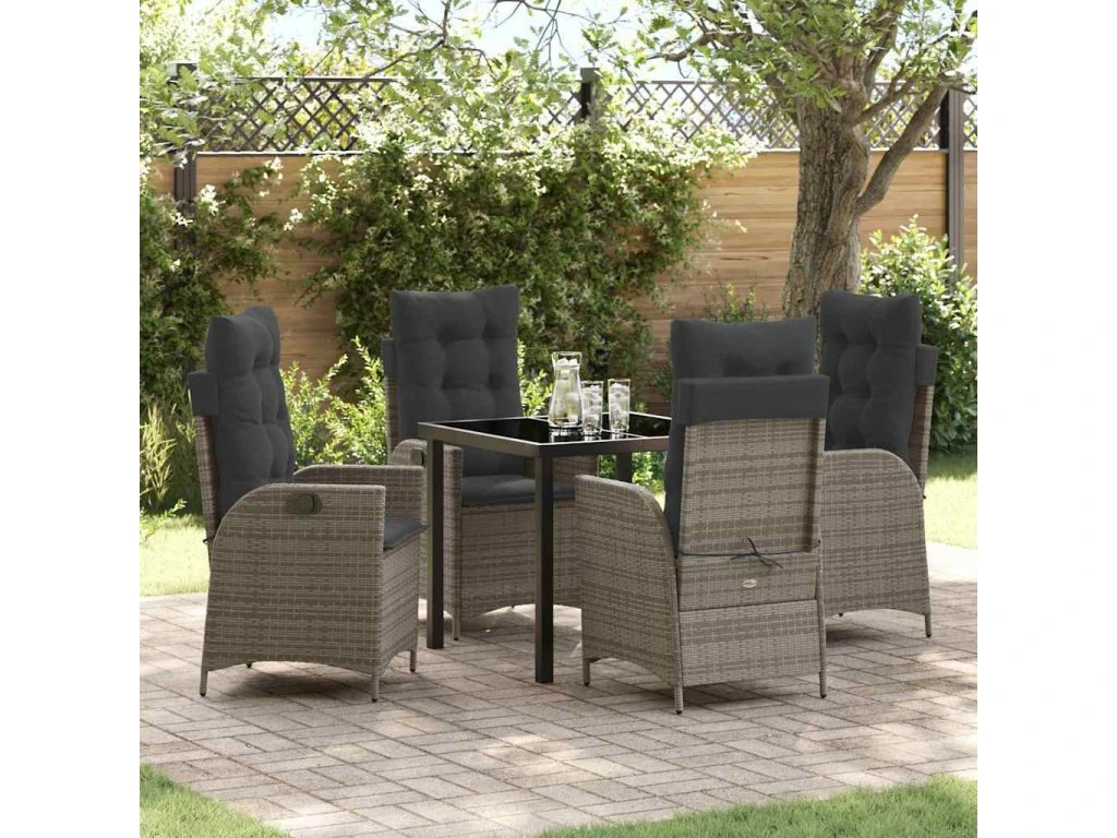 Zahradní jídelní souprava s polštářem 5 pcs Šedá polyratan [3380499]