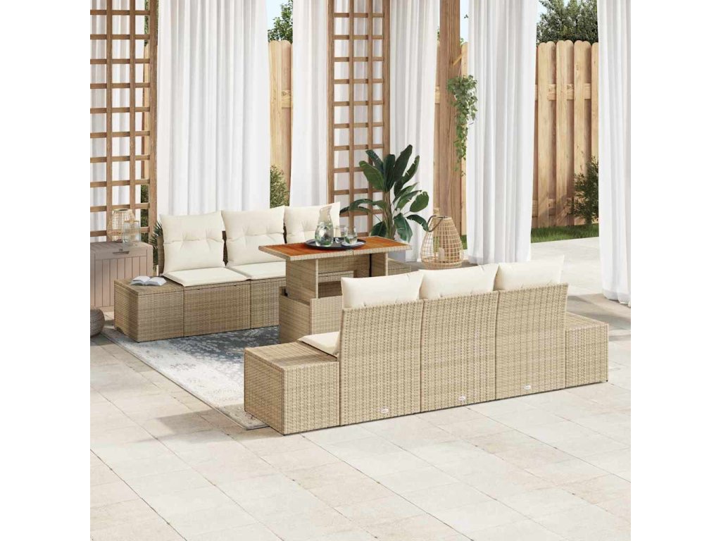 Zahradní jídelní souprava s polštářem 7 pcs Béžová a krémová [3349910]