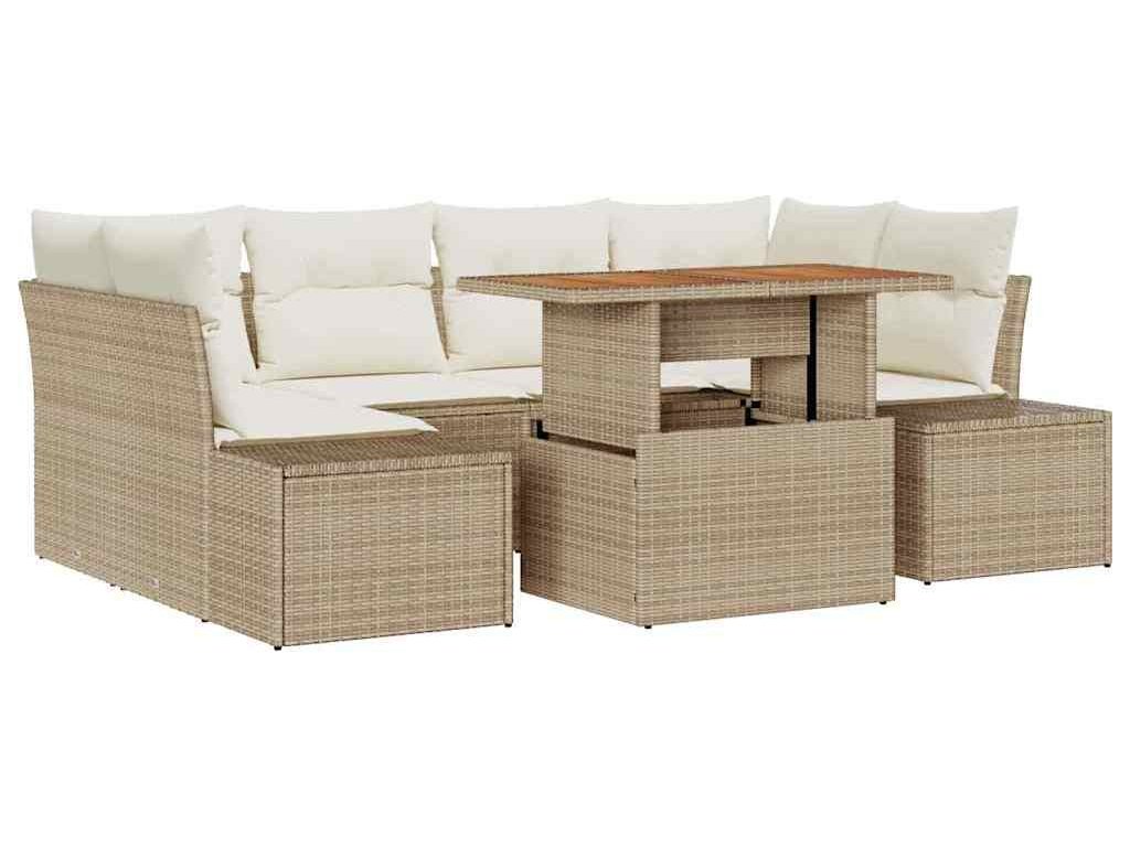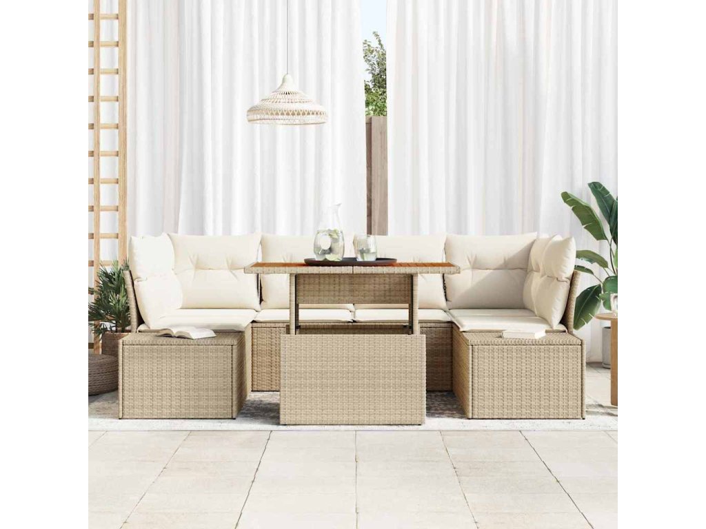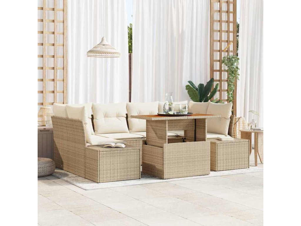 Zahradní jídelní souprava s polštářem 7 pcs Béžová a krémová [3349917]