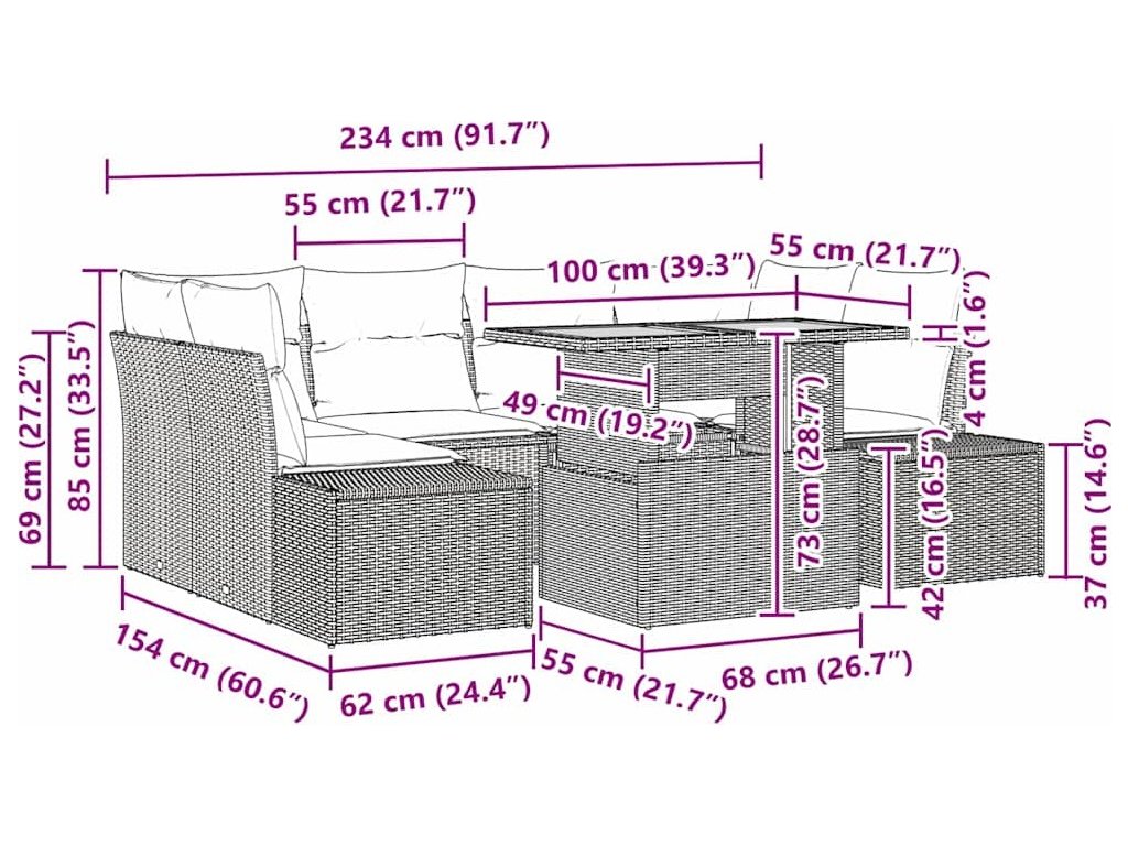 - Funkční komponenty: Souprava zahrnuje více možností sezení se zabudovaným úložným prostorem, což ji činí přizpůsobitelnou pro jakoukoli příležitost. Každé sedadlo má pěnový polštář potažený polyesterem, který poskytuje jak pohodlí, tak praktičnost. Kromě toho jednoznačně vypadají zadní části sedadel, což zajišťuje elegantní vzhled bez ohledu na umístění. Začlenění úložného prostoru do bočních, rohových a středových sedadel zvyšuje funkčnost setu tím, že poskytuje dostatek místa pro uskladnění polštářů nebo venkovních nezbytností.