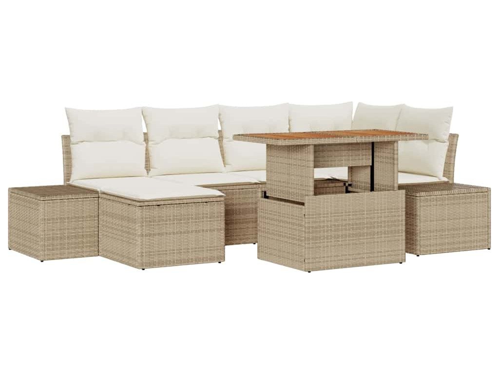 Zahradní jídelní souprava s polštářem 7 pcs Béžová a krémová [3349987]