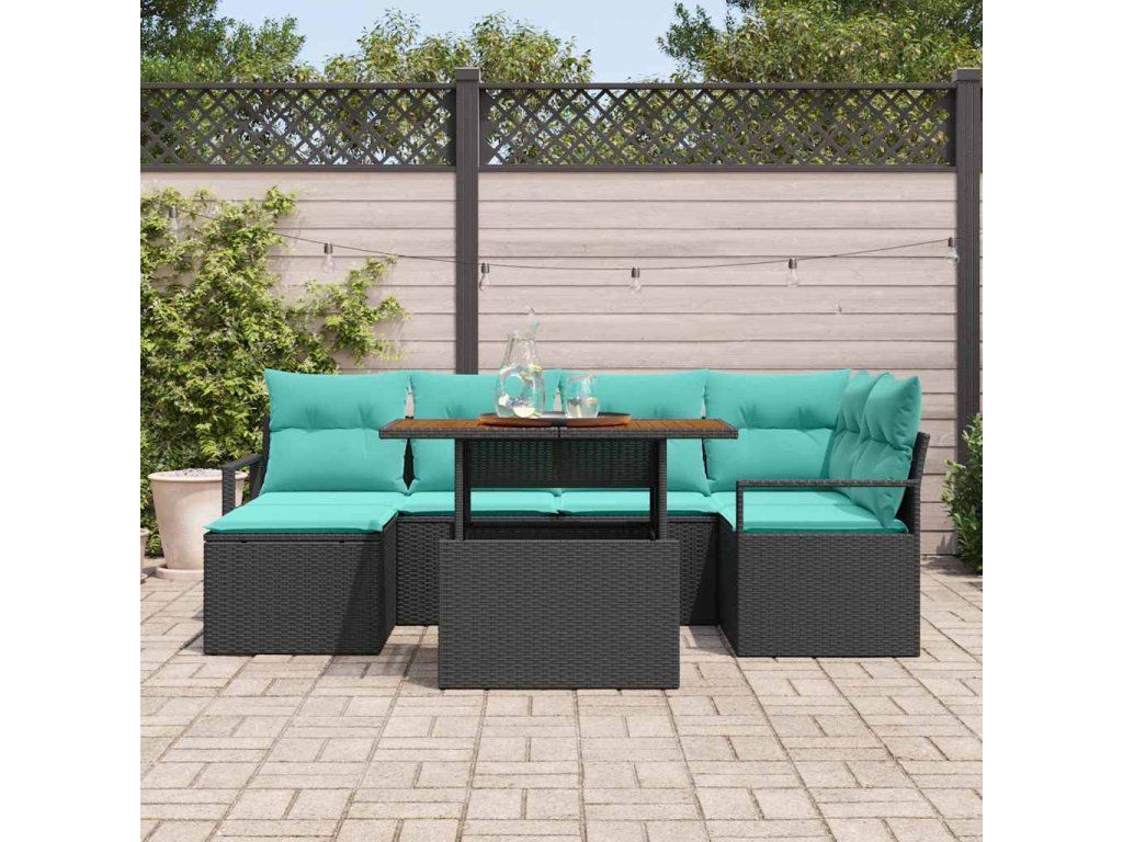 Zahradní jídelní souprava s polštářem 7 pcs Černá a tyrkysová [3349738]