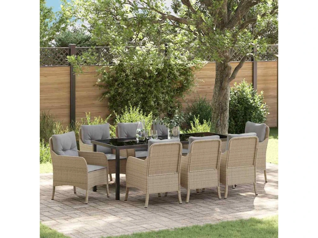 Zahradní jídelní souprava s polštářem 9 pcs Béžová polyratan [3380182]