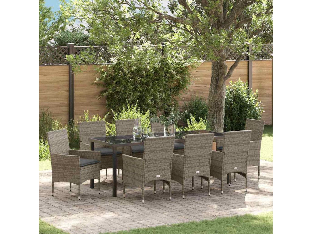 Zahradní jídelní souprava s polštářem 9 pcs Šedá polyratan [3379792]