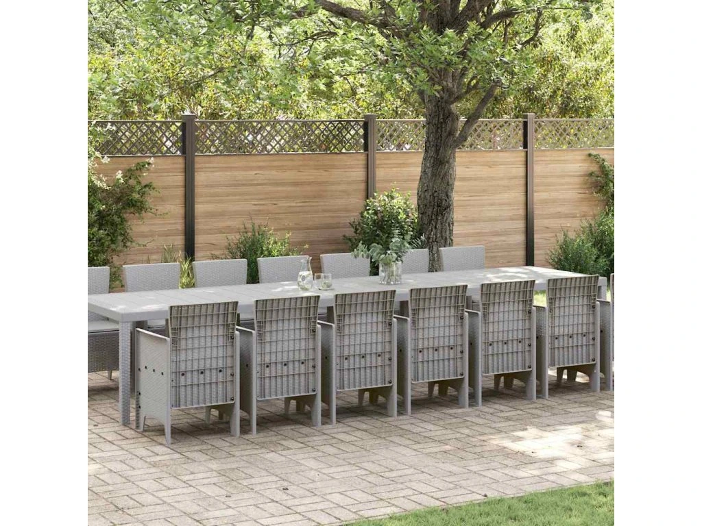 Zahradní jídelní souprava s polštáři 15 pcs Světle šedá PP [3378809]