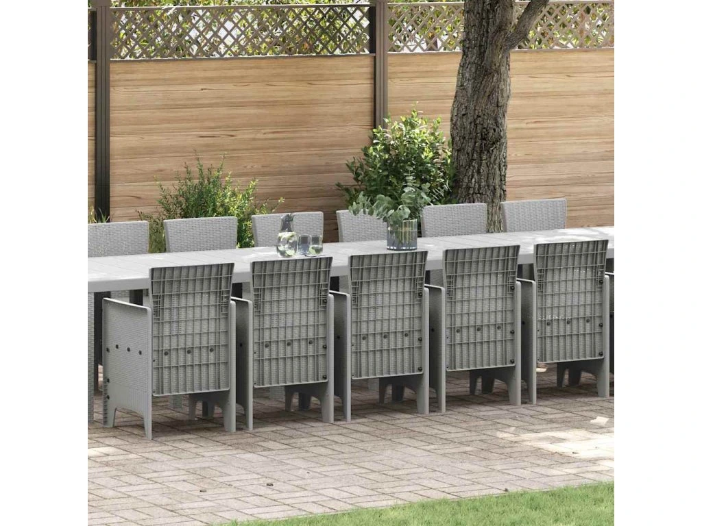 Zahradní jídelní souprava s polštáři 17 pcs Světle šedá PP [3378667]