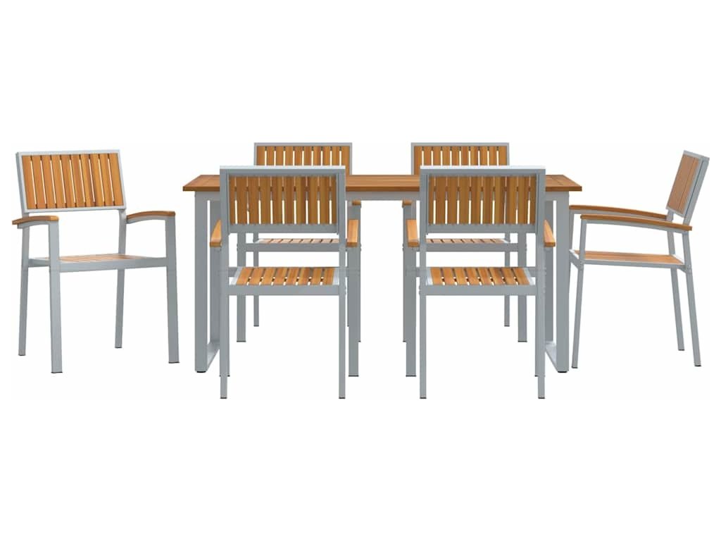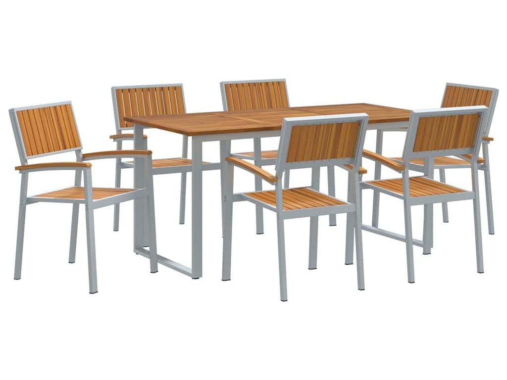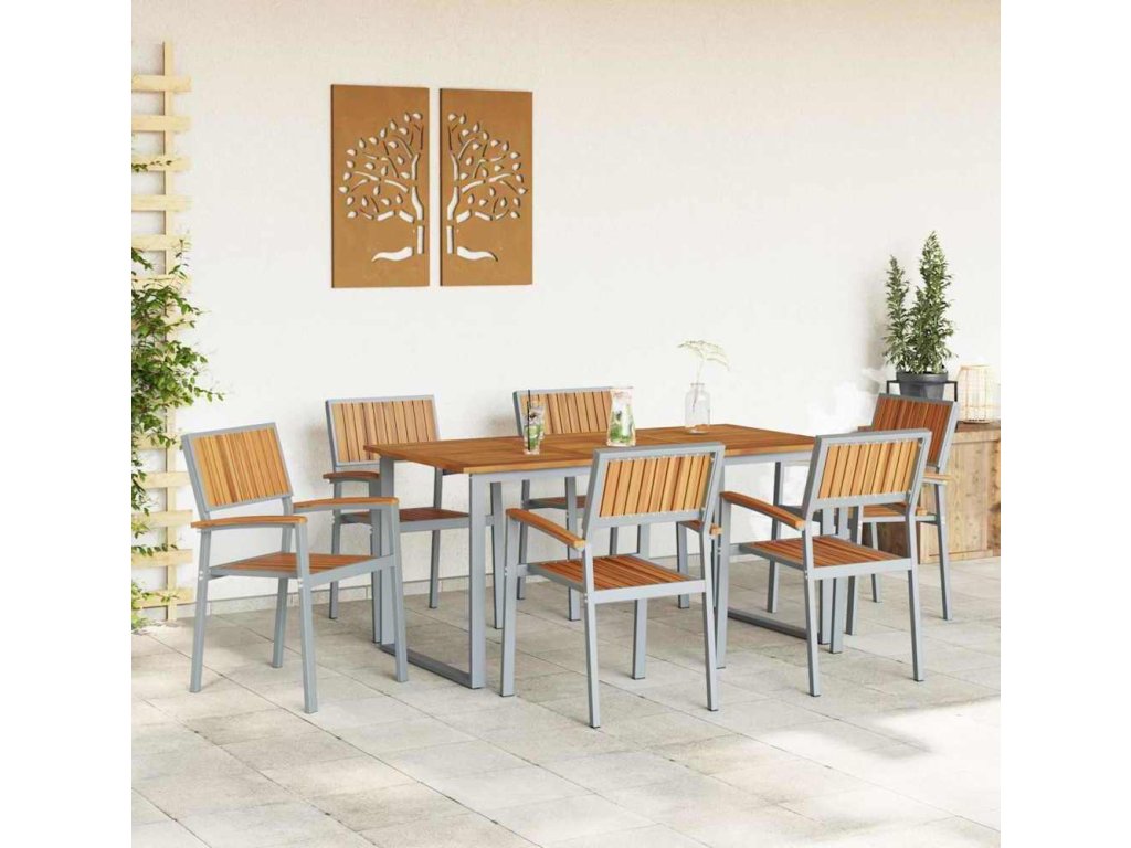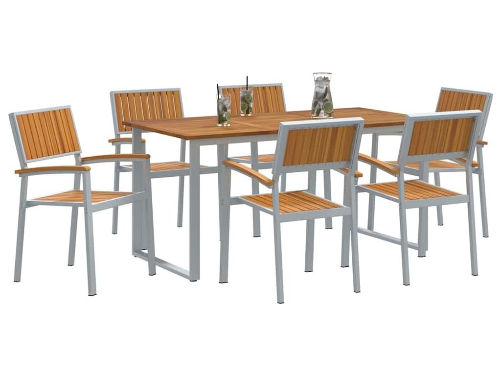Tento moderní zahradní jídelní set je stvořený pro současné venkovní prostory. Nabízí stylové a praktické řešení pro jídlo venku v zahradách a na terasách. Jeho jednoduché a čisté linie se skvěle hodí do různých venkovních prostředí a poskytují pohodové místo pro jídlo a společenské chvíle. Povrch akáciového dřeva je krásně bohatý a geometrická struktura vypadá elegantně, takže se hodí do každé venkovní atmosféry.