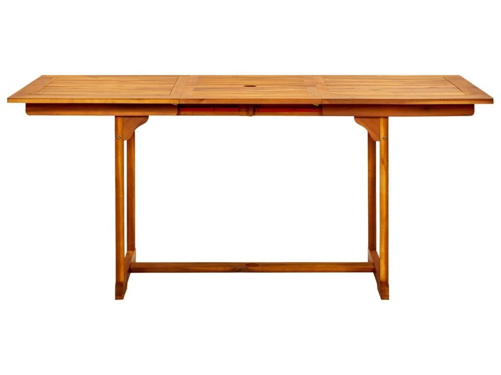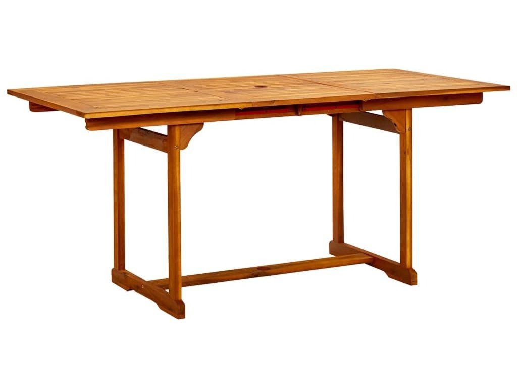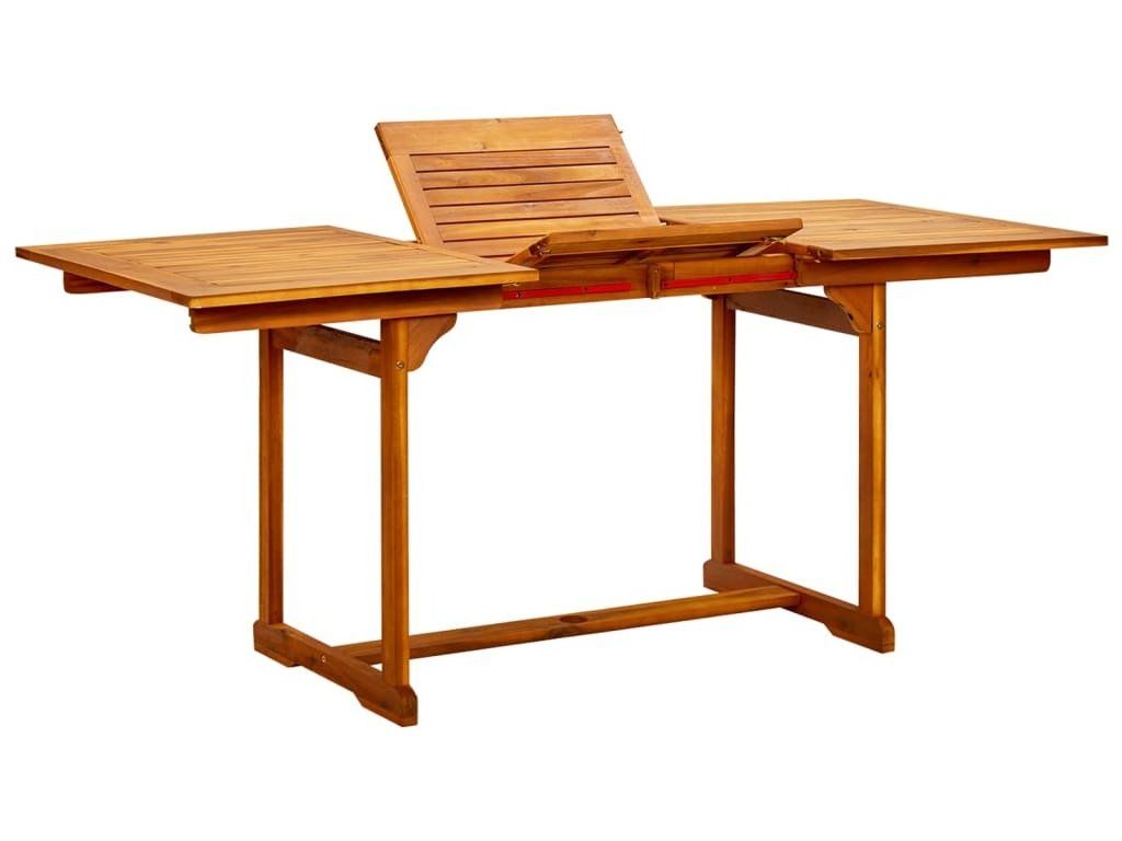 Tento zahradní stůl je vyrobený z masivního akáciového dřeva, tropického tvrdého dřeva, které je odolné vůči povětrnostním vlivům a má dlouhou životnost. Jeho povrch je napuštěný olejem, takže se snadno čistí vlhkým hadříkem. Tento zahradní stůl je konstruován tak, aby se dal prodloužit, když je třeba víc místa.