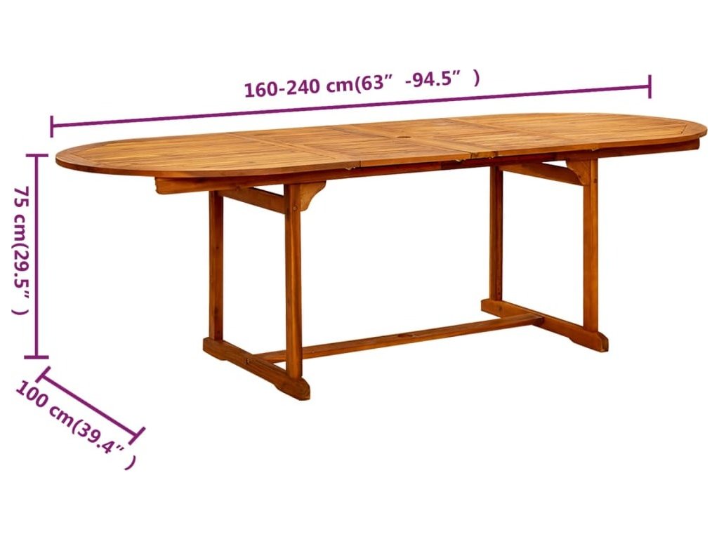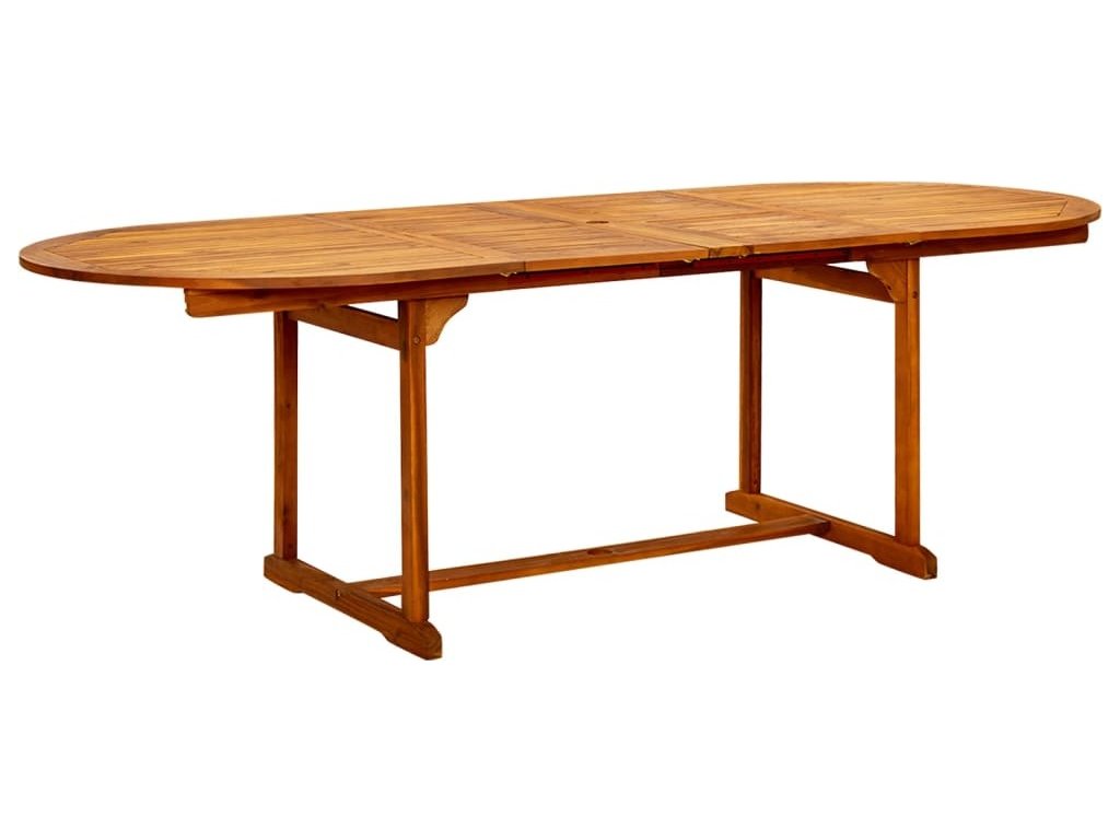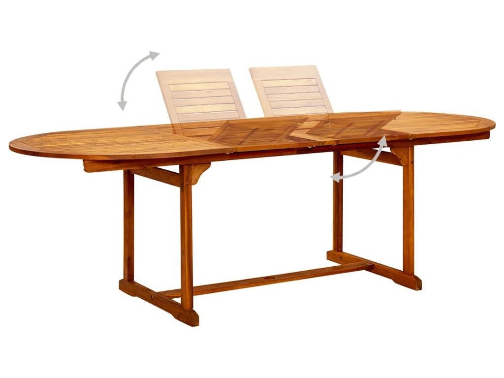 Tento zahradní stůl je vyrobený z masivního akáciového dřeva, tropického tvrdého dřeva, které je odolné vůči povětrnostním vlivům a má dlouhou životnost. Jeho povrch je napuštěný olejem, takže se snadno čistí vlhkým hadříkem. Tento zahradní stůl je konstruován tak, aby se dal prodloužit, když je třeba víc místa.