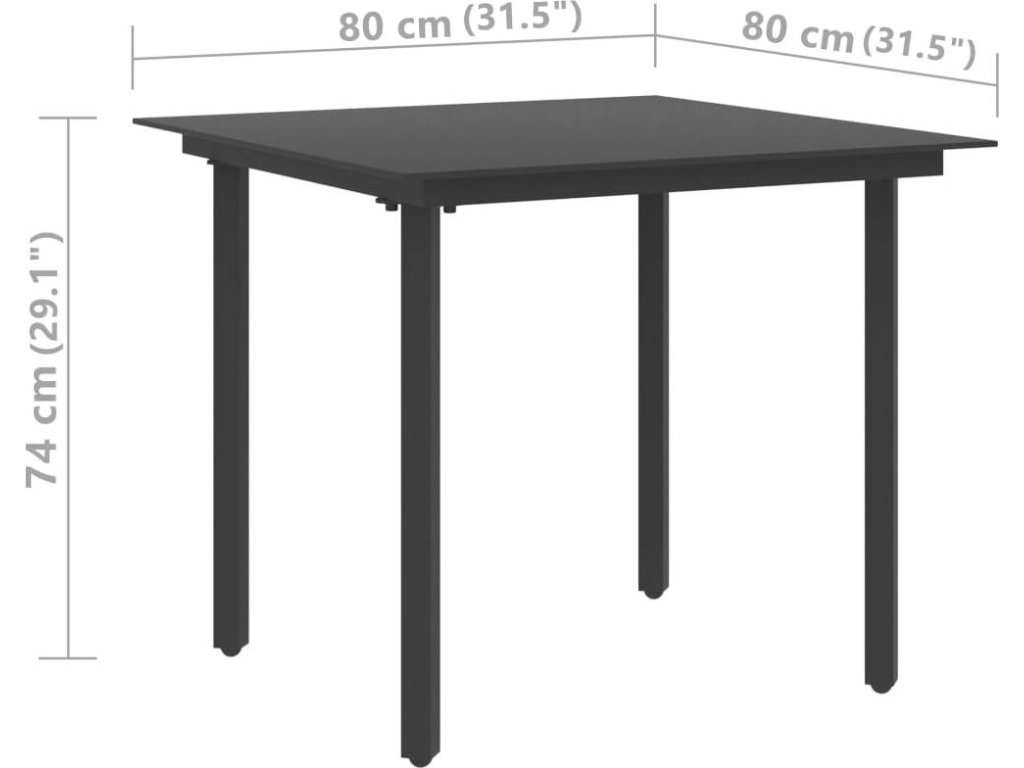 Zahradní jídelní stůl černý 80 x 80 x 74 cm ocel a sklo [313109]