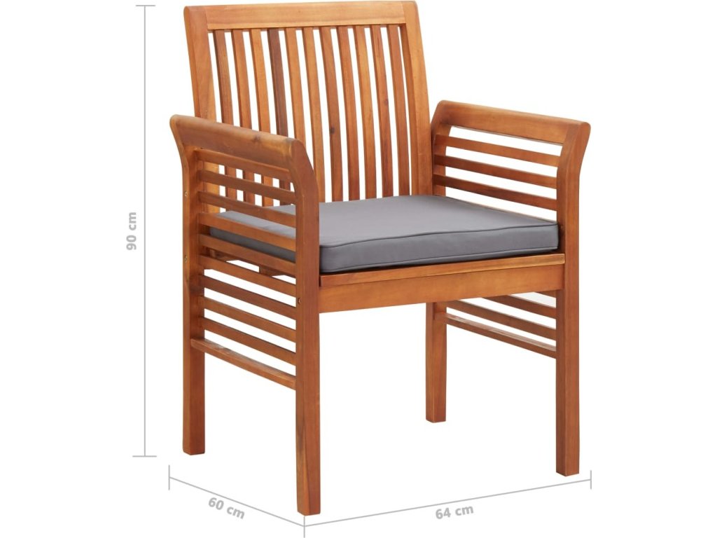 Tyto židle z dřevěným rámem z klimaticky odolné akácie s sebou na vaši terasu či zahrádku přinesou stylový vzhled a vaše venkovní bydlení oživí svým přírodním šarmem. Pohodlně se usaďte a relaxujte, v našich komfortních židlích s hlubokými sedáky a měkkými pěnovými poduškami si můžete užívat odpočinek po dlouhé hodiny. Voděodolné podušky se snadno čistí. Sestavení židlí je snadné.