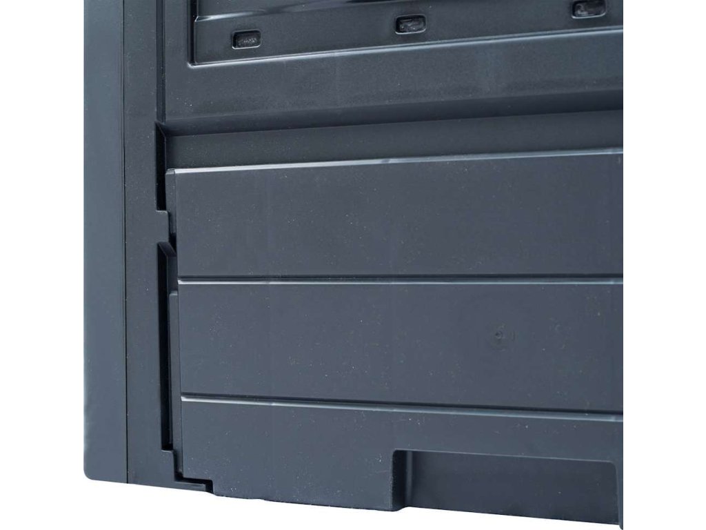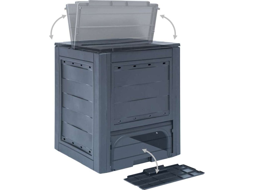 Koše na kompost jsou vyrobené z plastu, skvěle tudíž odolávají UV záření i nepříznivým vlivům počasí. Mají lehkou konstrukci a vypadají velmi úhledně. Disponují rozděleným víkem pro optimální zavlažování a větrání. V bočních stěnách se nachází větrací otvory, s jejichž pomocí dokáže kompostér vytvořit ideální podmínky ke kompostování. Tyto čtvercové kompostéry, které přirozeně zapadnou do každé zahrady, vám usnadní recyklaci vašeho organického odpadu.
