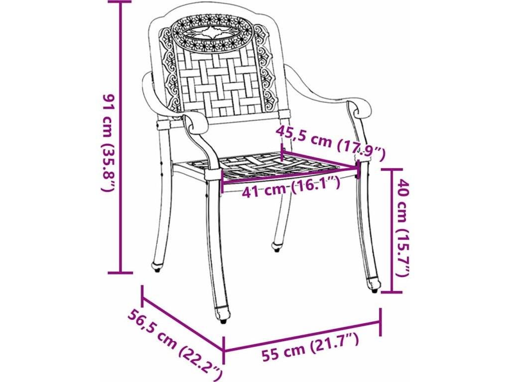 Toto vintage zahradní křeslo nabízí klasický šarm a moderní odolnost. Vyrobené z robustního hliníku, je navrženo pro venkovní použití a zajišťuje dlouhou životnost. Je skvělé pro všechny, kdo chtějí přidat kousek historie a elegance do svých venkovních prostor.