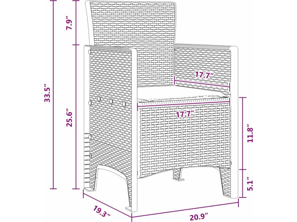 - Materiál polypropylen: Křeslo je ze super pevného polypropylenu, ideálního pro venkovní nábytek. Bez problémů zvládne všechny povětrnostní podmínky a jeho UV ochrana zajištuje, že barvy nevyblednou. Křeslo si tak dlouho udržuje svěží vzhled.