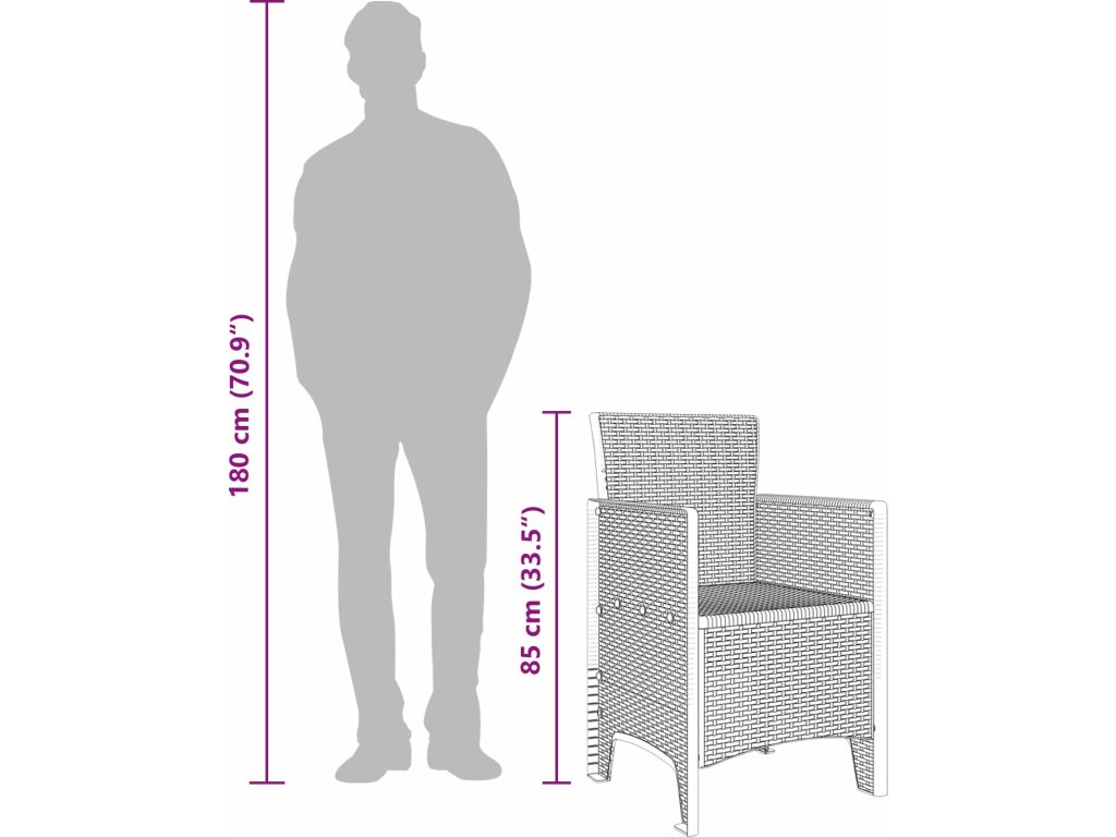 - Materiál polypropylen: Křeslo je ze super pevného polypropylenu, ideálního pro venkovní nábytek. Bez problémů zvládne všechny povětrnostní podmínky a jeho UV ochrana zajištuje, že barvy nevyblednou. Křeslo si tak dlouho udržuje svěží vzhled.